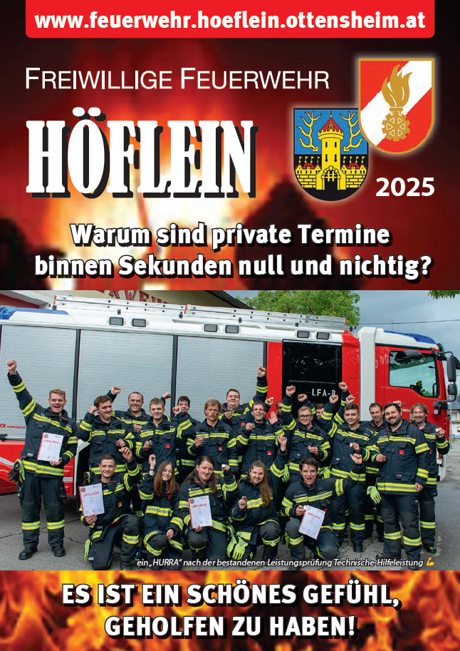 Traditionell haben wir auch heuer einen Jahresbericht vom abgelaufenen Jahr 2025 erstellt, um Ihnen Einblicke in das Geschehen der Feuerwehr Höflein zu geben.