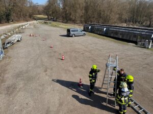 Seit Oktober 2025 führen wir für unseren angehenden Feuerwehrmann die Grundausbildung durch. Hierbei wird der Kamerad mit dem Grundwissen sowie einer Basis über die Feuerwehr ausgebildet. Bei der Abschlussübung wurden die Themen wie Absichern einer Einsatzstelle, Leitern, der Löschangriff sowie die Hydranten in der Praxis behandelt. Ein wichtiger Punkt, nämlich die Reinigung der Ausrüstung und die Wiederherstellung der Einsatzbereitschaft, wurde abschließend noch durchgeführt.